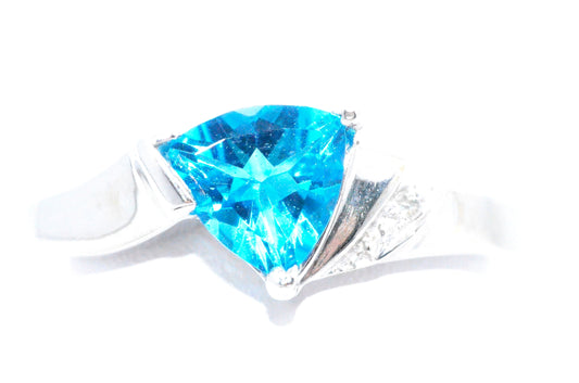 14Kt Gold Swiss Blue Topaz & Diamond Trillion Ring