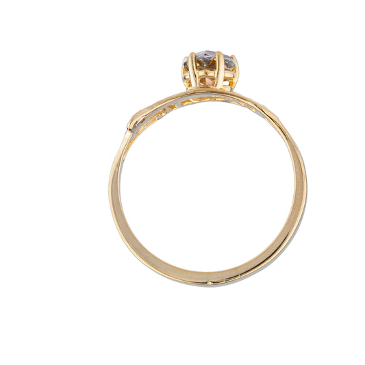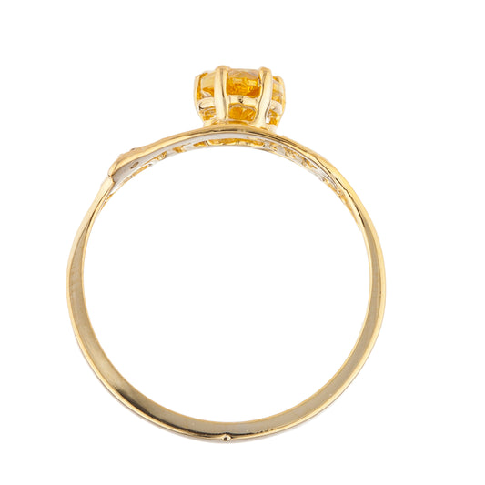 14Kt Gold Yellow Citrine & Diamond Heart Mom Ring