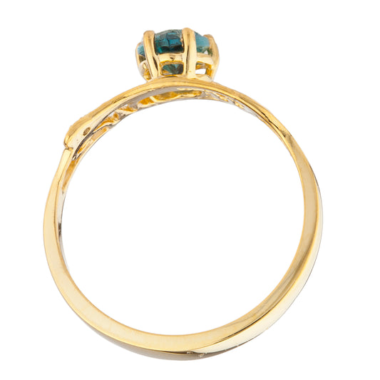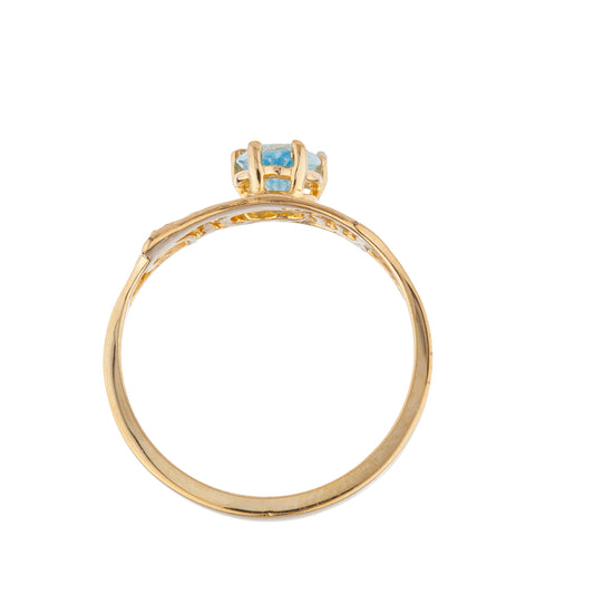 14Kt Gold Blue Topaz & Diamond Heart Mom Ring