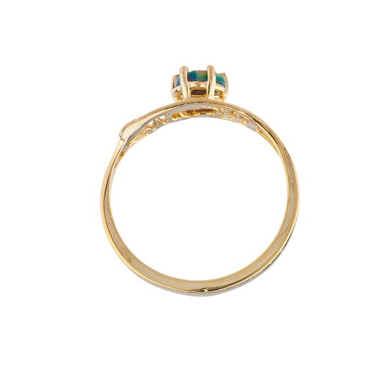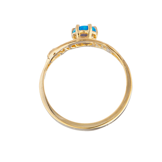14Kt Gold Blue Opal & Diamond Heart Mom Ring