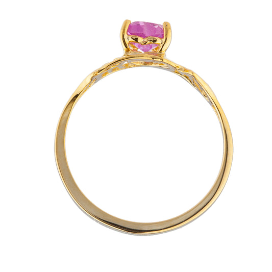 14Kt Gold Pink Sapphire & Diamond Heart Mom Ring