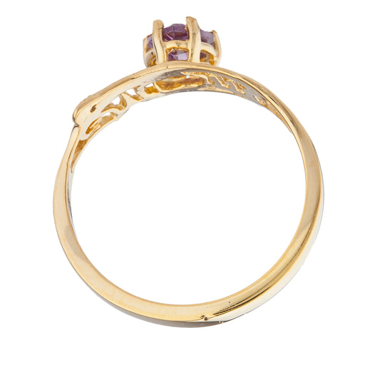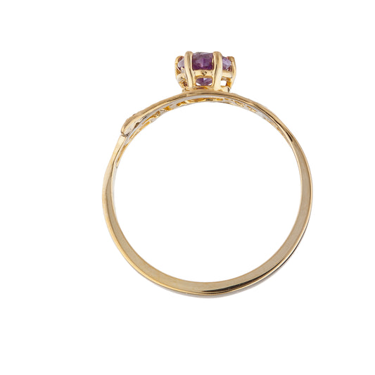 14Kt Gold Amethyst & Diamond Heart Mom Ring