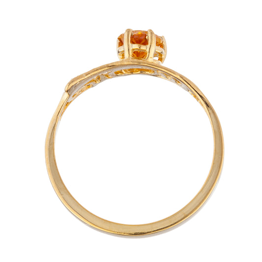 14Kt Gold Orange Citrine & Diamond Heart Mom Ring