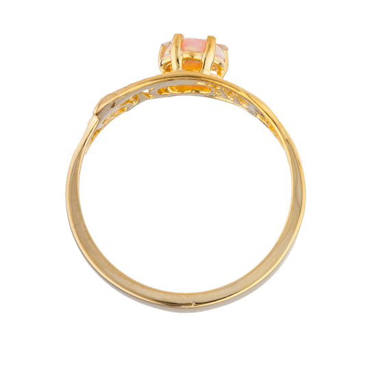 14Kt Gold Pink Opal & Diamond Heart Mom Ring