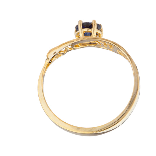 14Kt Gold Blue Sapphire & Diamond Heart Mom Ring