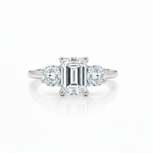 14K Gold 1.60 Ct 3 Stone Emerald Cut Lab Grown Diamond Ring