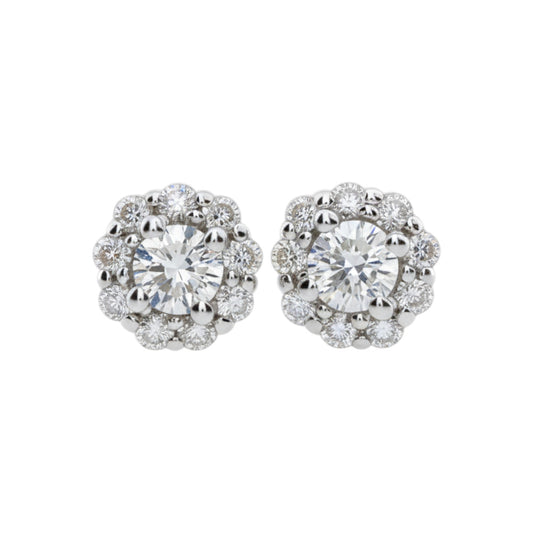 14Kt Gold 1.40 Ct Genuine Natural Diamond Halo Stud Earrings
