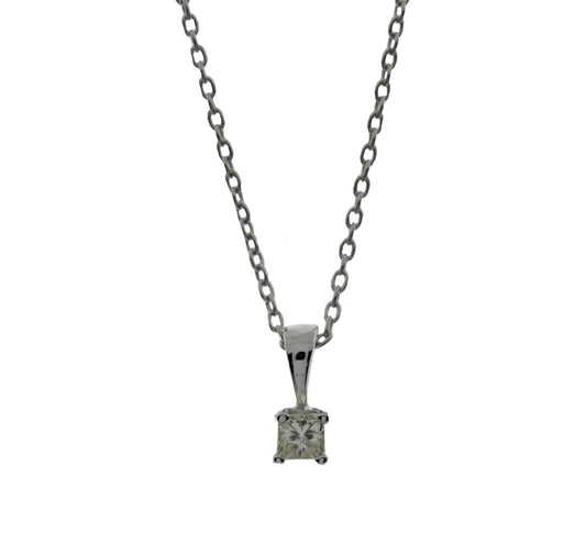 14Kt Gold 0.10 Ct Genuine Natural Diamond Princess Cut Necklace Pendant