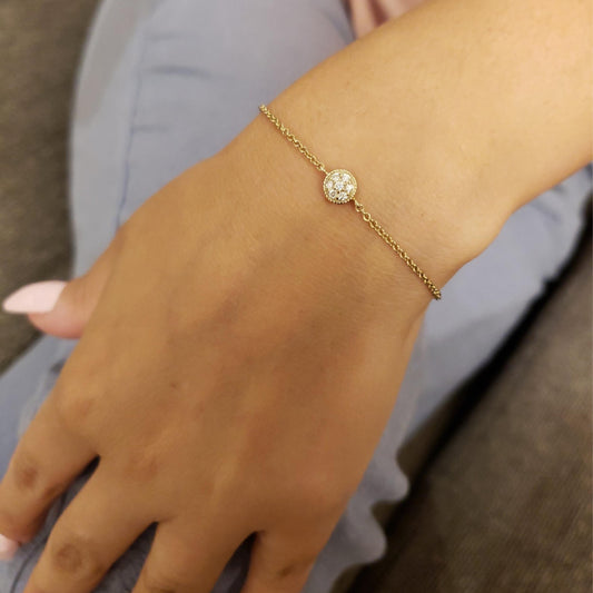14Kt Gold Genuine Natural Diamond Cluster Bracelet
