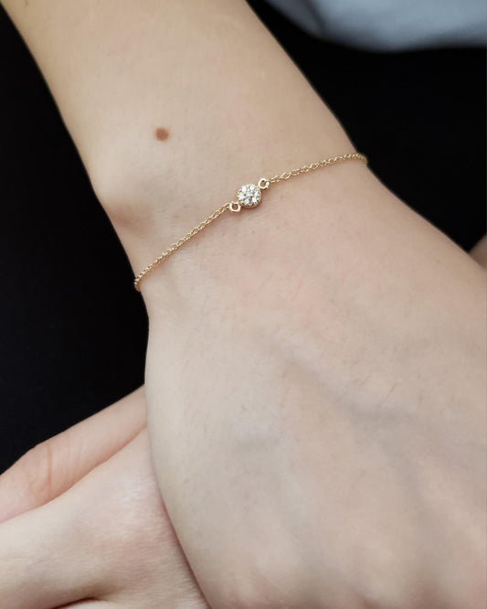 14Kt Gold Genuine Natural Diamond Cluster Bracelet