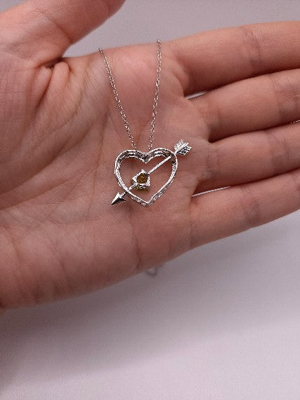 14Kt Gold Peridot Heart Bow & Arrow Pendant Necklace