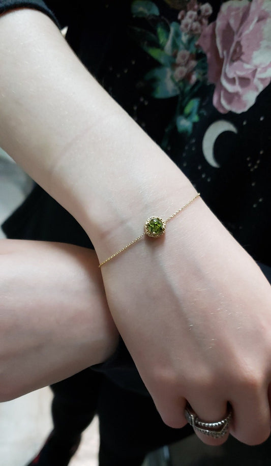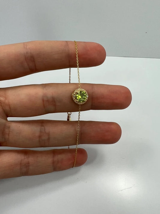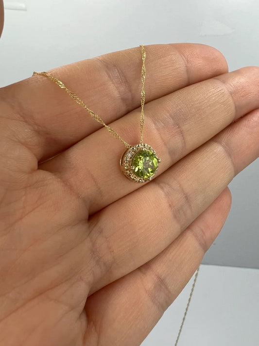 14Kt Gold Peridot & Diamond Round Pendant Necklace