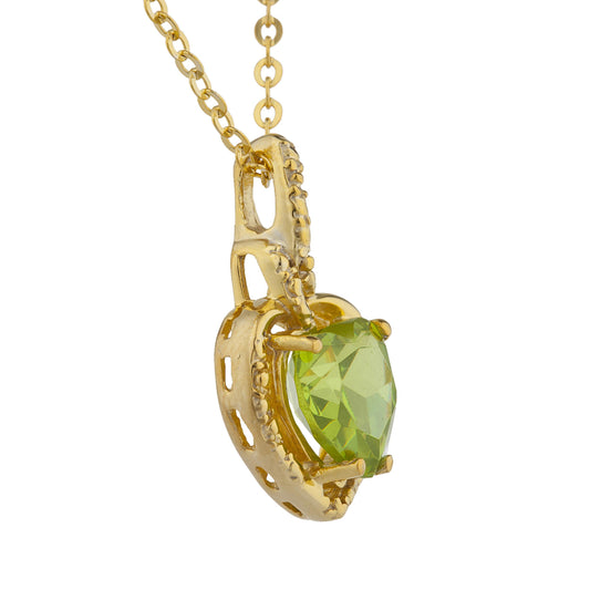 14Kt Gold Peridot Heart Design Pendant Necklace