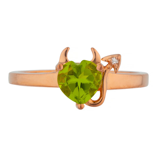 14Kt Gold Peridot & Diamond Devil Heart Ring