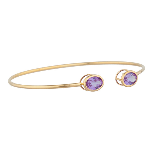 14Kt Gold Amethyst Oval Bezel Bangle Bracelet