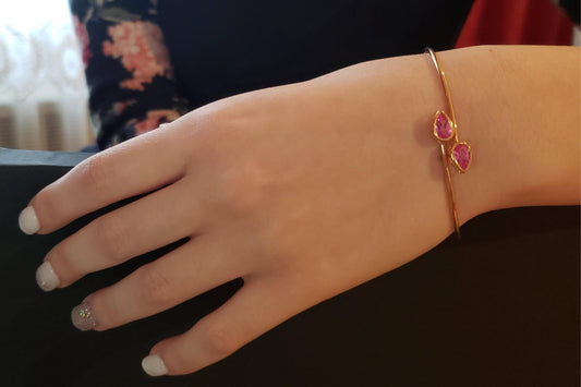 14Kt Gold Pink Sapphire Pear Bezel Bangle Bracelet