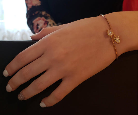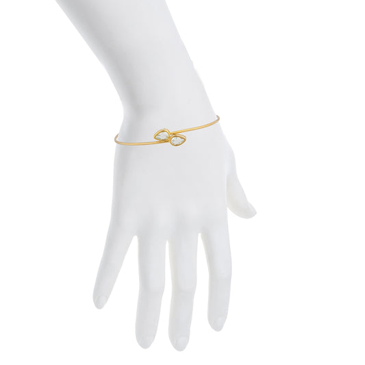 14Kt Gold Zirconia Pear Bezel Bangle Bracelet