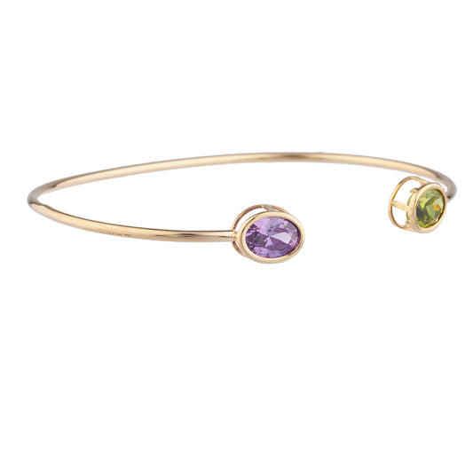 14Kt Gold Genuine Aquamarine & Amethyst Oval Bezel Bangle Bracelet
