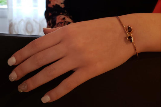 14Kt Gold Garnet Pear Bezel Bangle Bracelet