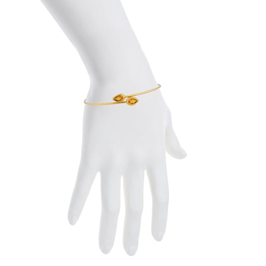 14Kt Gold Yellow Citrine Pear Bezel Bangle Bracelet