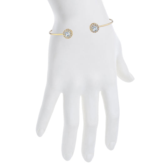 14Kt Gold Blue Topaz Halo Design Bangle Bracelet