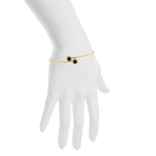 14Kt Gold Genuine Black Onyx Round Bezel Bangle Bracelet