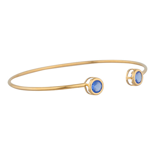 14Kt Gold Blue Sapphire Round Bezel Bangle Bracelet