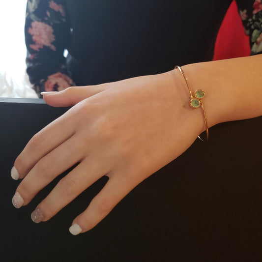 14Kt Gold Green Sapphire Round Bezel Bangle Bracelet