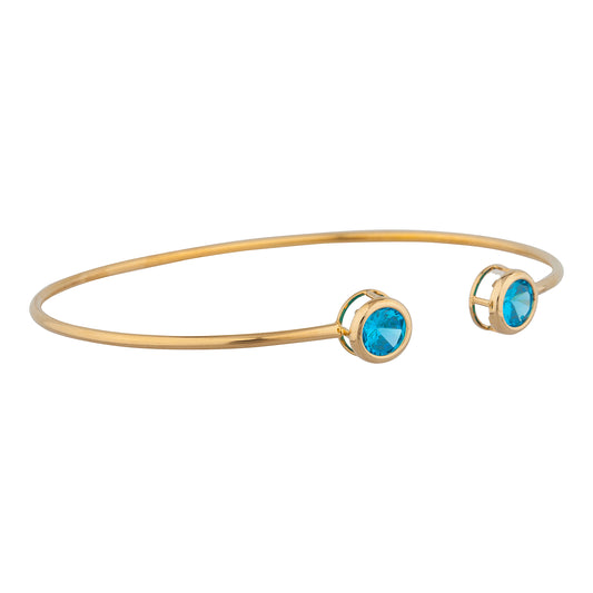 14Kt Gold Blue Topaz Round Bezel Bangle Bracelet
