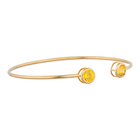 14Kt Gold Yellow Citrine Round Bezel Bangle Bracelet