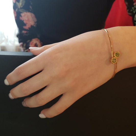 14Kt Gold Peridot Round Bezel Bangle Bracelet