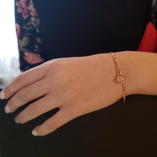 14Kt Gold Genuine Opal Round Bezel Bangle Bracelet
