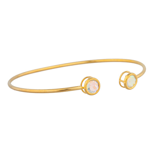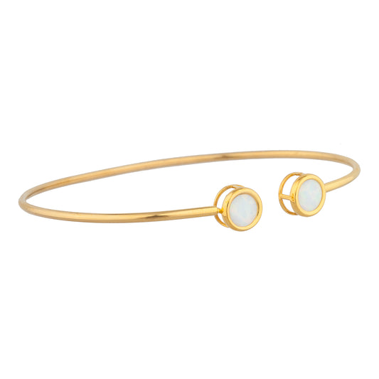 14Kt Gold Genuine Opal Round Bezel Bangle Bracelet