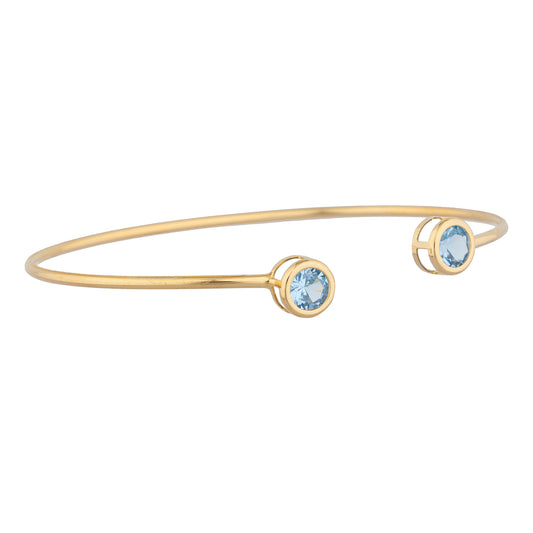 14Kt Gold Blue Topaz Round Bezel Bangle Bracelet