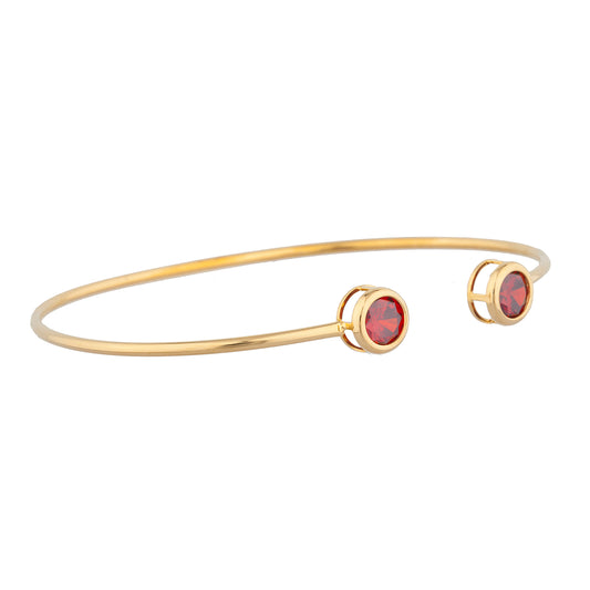 14Kt Gold Garnet Round Bezel Bangle Bracelet