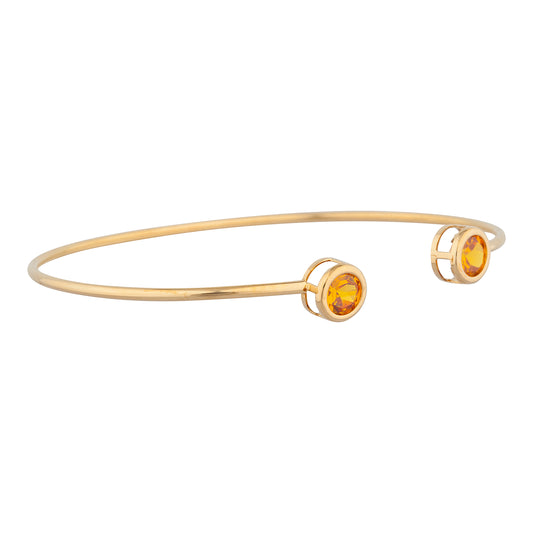 14Kt Gold Orange Citrine Round Bezel Bangle Bracelet