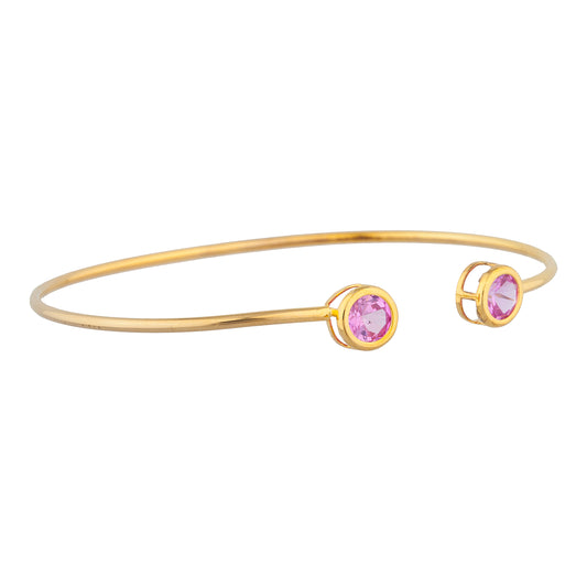14Kt Gold Pink Sapphire Round Bezel Bangle Bracelet