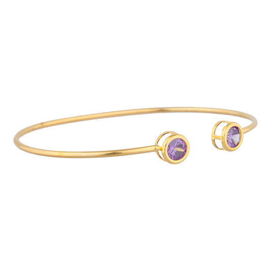 14Kt Gold Amethyst Round Bezel Bangle Bracelet