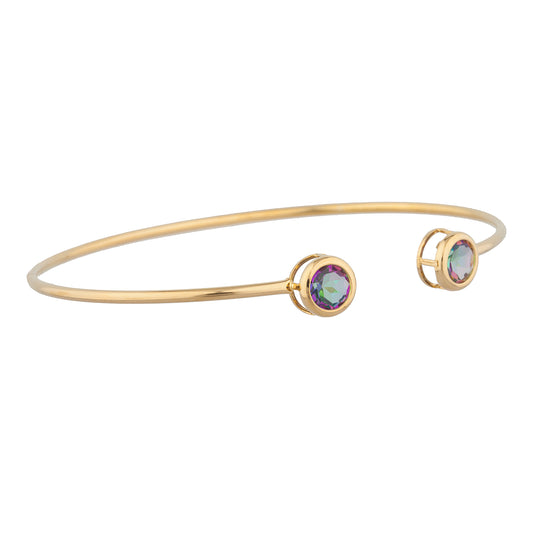 14Kt Gold Natural Mystic Topaz Round Bezel Bangle Bracelet