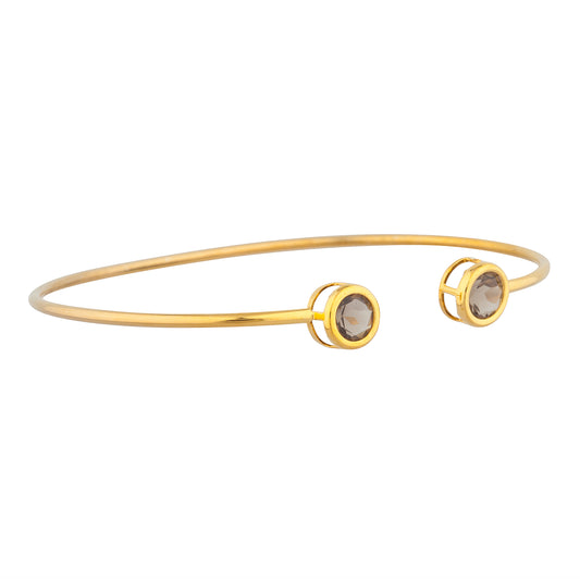 14Kt Gold Genuine Smoky Topaz Round Bezel Bangle Bracelet