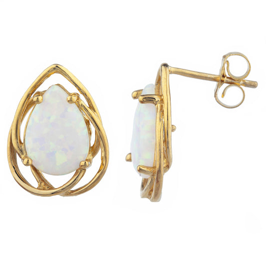 14Kt Gold Opal Pear Teardrop Design Stud Earrings