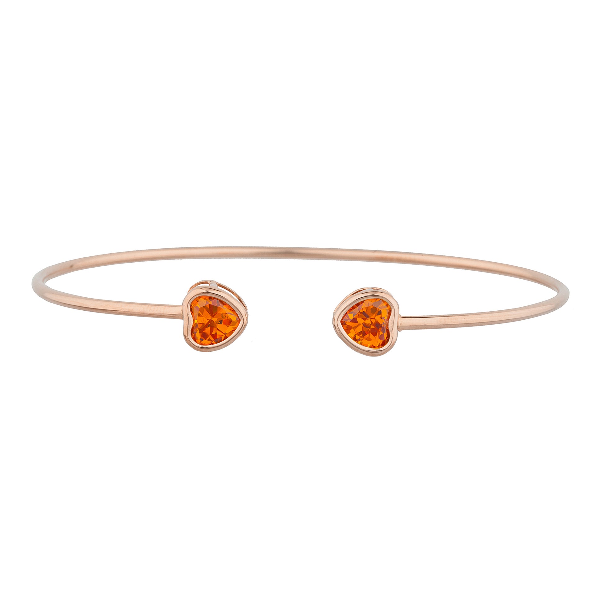 14Kt Gold Orange Citrine Heart Bezel Bangle Bracelet