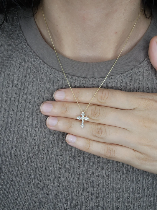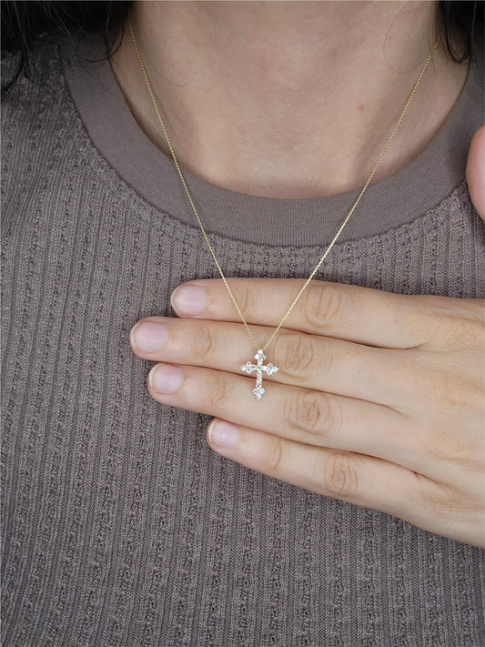 14Kt Gold 0.78 Ct Lab Grown Diamond Cross Pendant Necklace