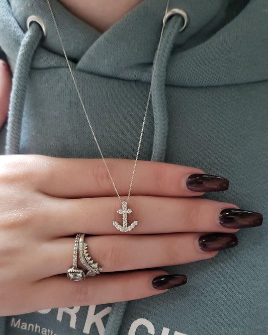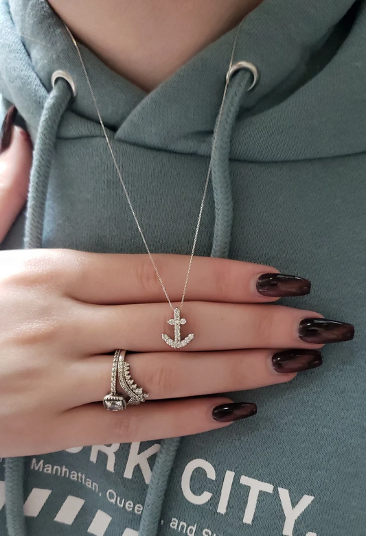 14Kt Gold 0.35 Ct Lab Grown Diamond Anchor Cross Pendant Necklace
