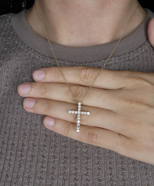14Kt Gold 6 Ct Lab Grown Diamond Cross Pendant