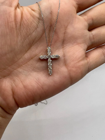 14Kt Gold 2 Ct Genuine Natural Diamond Cross Pendant Necklace
