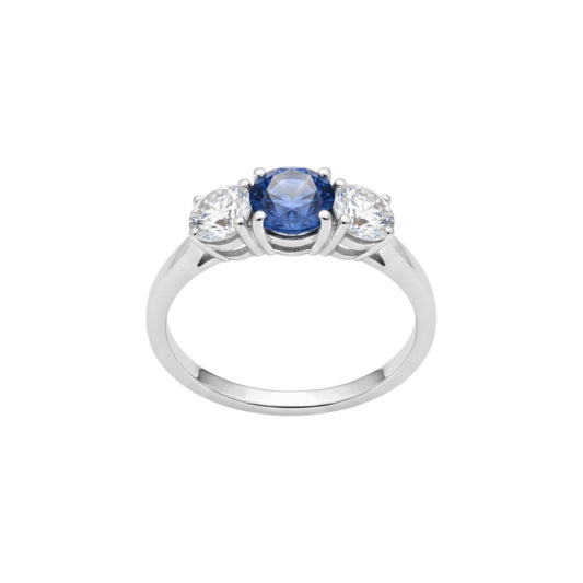 Simulated Tanzanite & Lab Grown Diamond Round ring .925 Sterling Silver