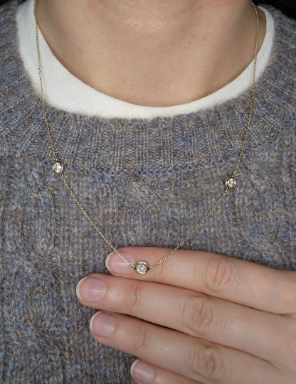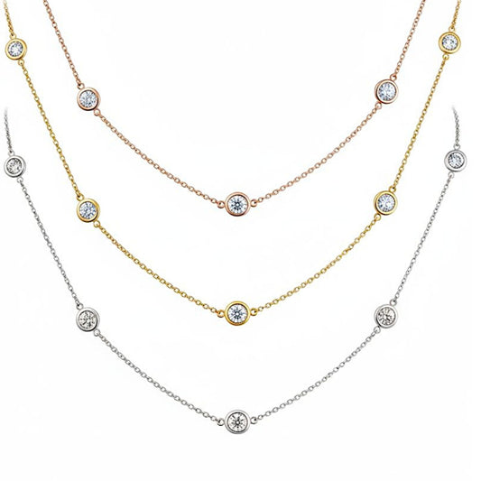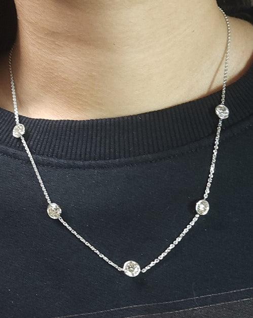 14Kt Gold 5 Ct Lab Grown Diamond by the Yard 5 Stone Diamond Bezel Necklace