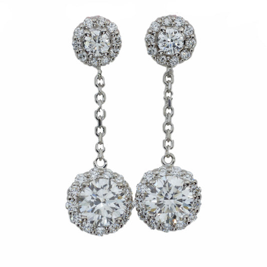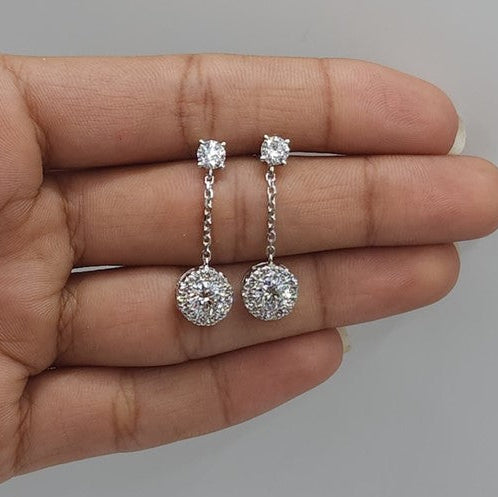 14Kt Gold 1.96 Ct Lab Grown Halo Dangle Stud Diamond Earrings