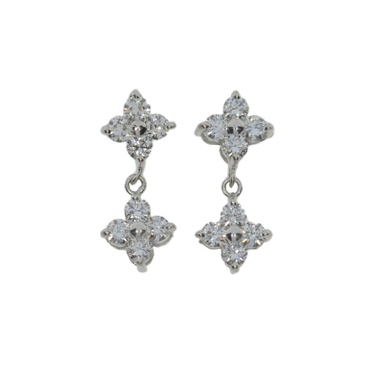 14kt white gold 4 stone lab diamond earrings top and bottom, 2 links in between, pushbacks